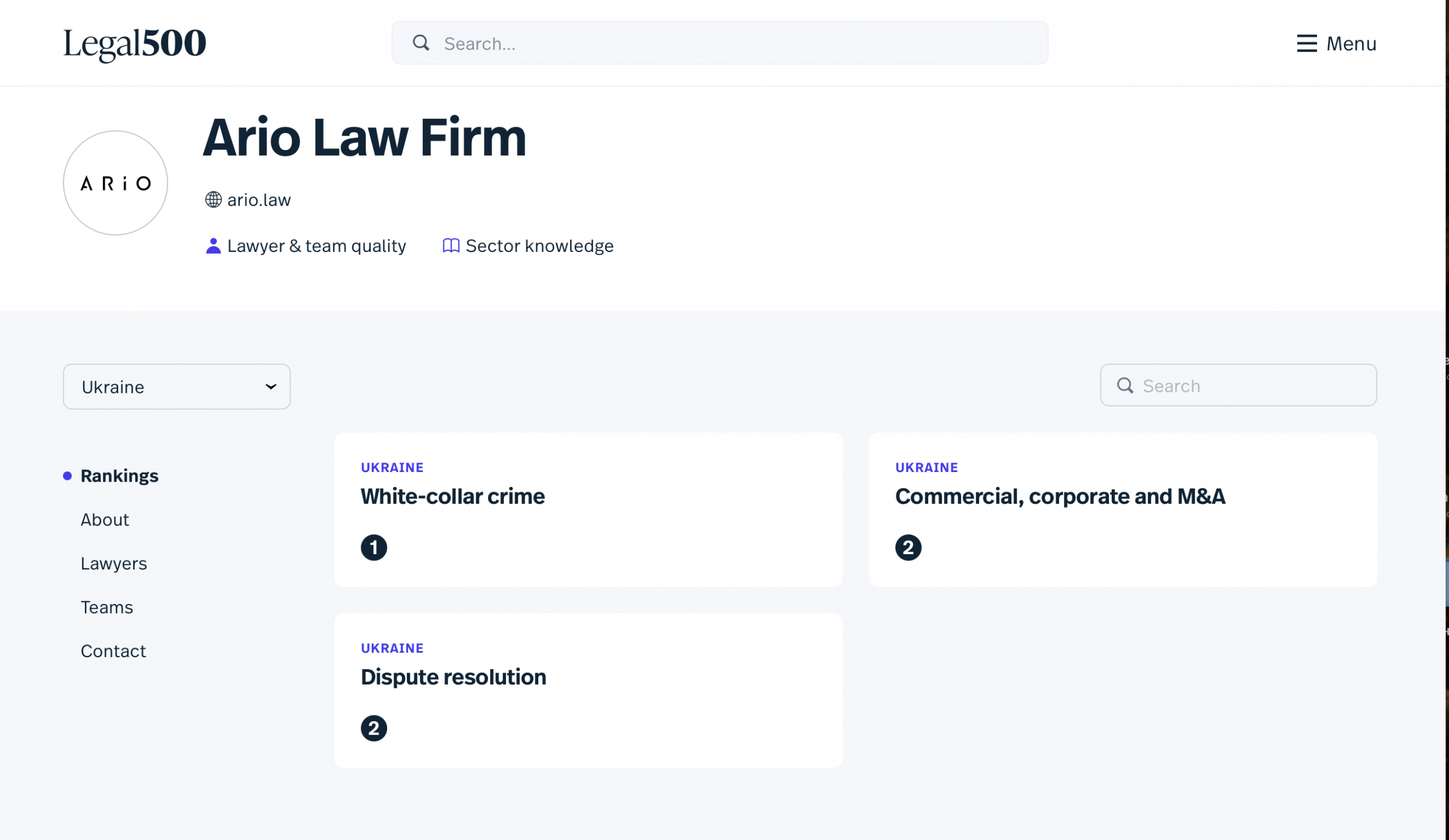 Результати нашої команди можна переглянути тут: https://www.legal500.com/firms/17982-ario-law-firm/c-ukraine/rankings