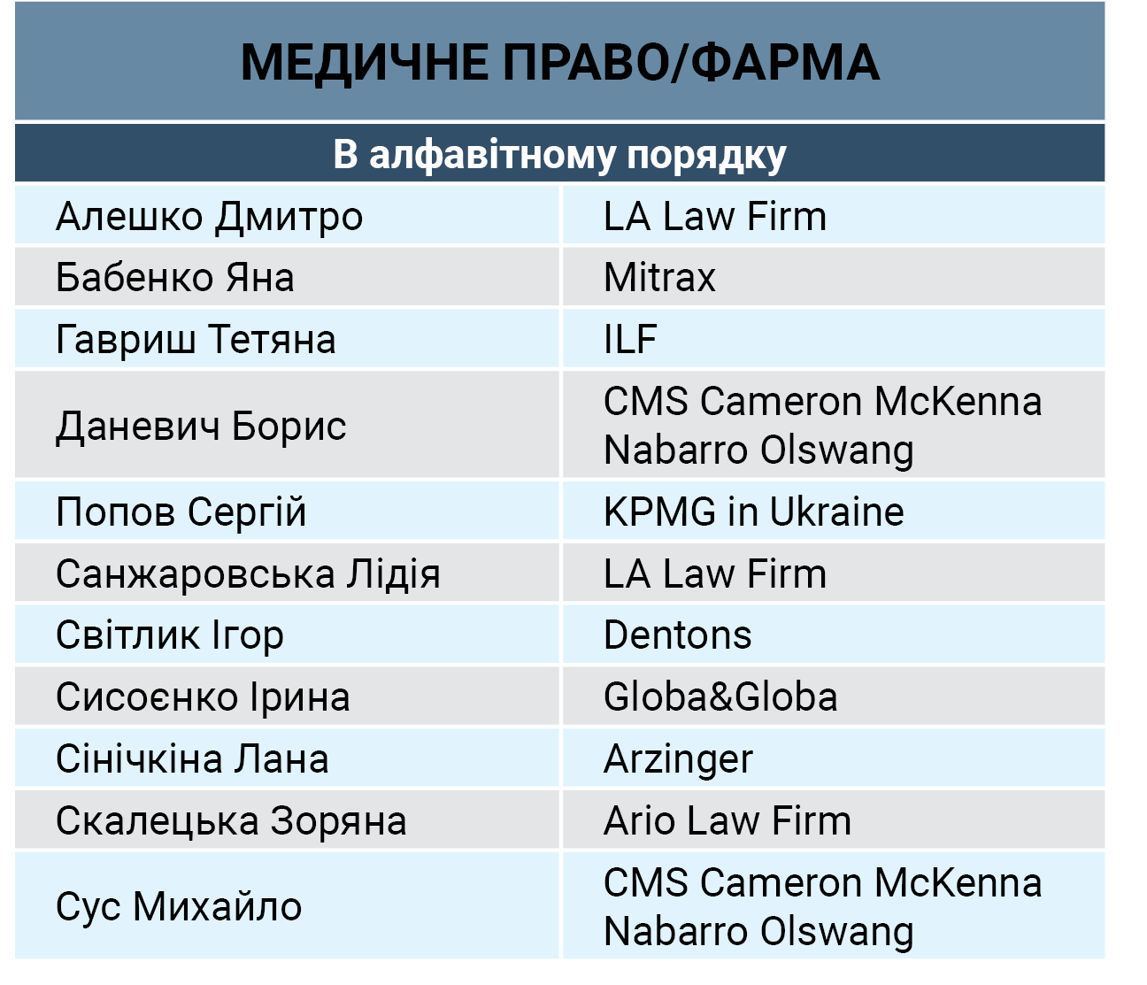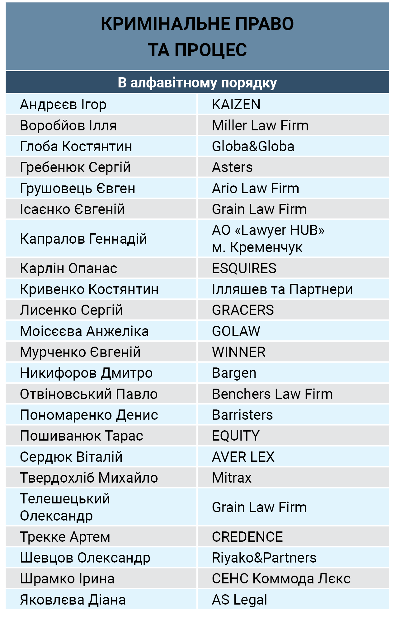 «Дослідження ґрунтується на опитуваннях клієнтів, представників бізнесу та учасників юридичного ринку. Також враховуються експертні інтерв’ю та редакційний аналіз практики. Основна увага приділяється спеціалізації, досвіду роботи в конкретних практиках, участі у складних проєктах і репутації юриста на ринку. Кількісні показники не є визначальними», - зазначає видання. - За підсумками дослідження в кожній практиці сформовано списки юристів на підставі результатів голосування клієнтів і професійної спільноти, а також проведених інтерв’ю з учасниками ринку. Усі прізвища в межах кожного списку подано в алфавітному порядку».